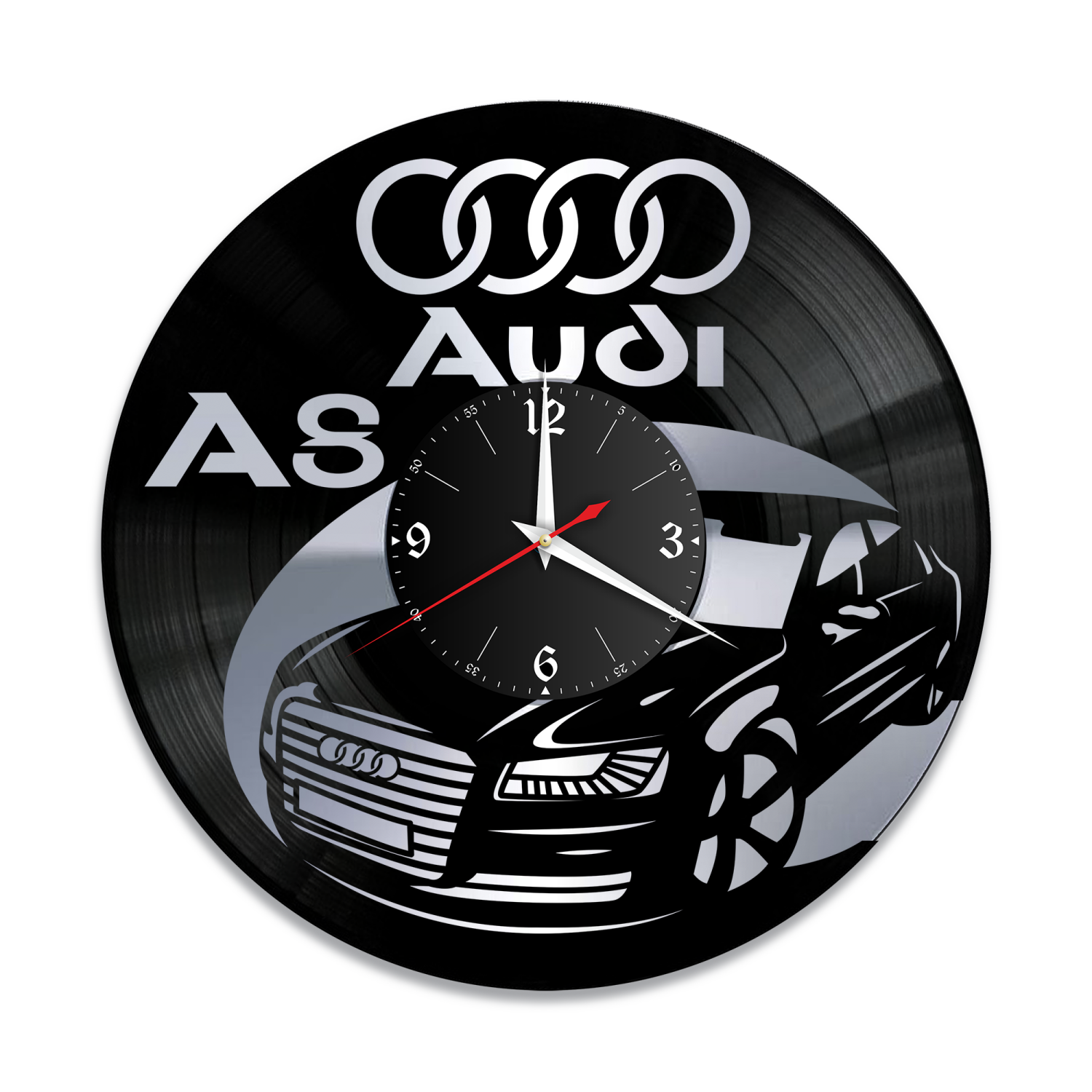 Часы настенные, изготовлены из настоящей виниловой пластинки. Фоновая подложка изготовлена так же из виниловой пластинки и окрашена акриловой краской на водной основе. Диаметр часов 30 см, диаметр циферблата 11 см. Плавный ход секундной стрелки. Надежный кварцевый часовой механизм. Питание: 1 элемент АА. Настенные часы Audi A8 из винила с фоном - это оригинальный подарок, который способен удивить любого. Все настенные часы изготовлены из настоящих виниловых пластинок. Компания имеет собственное производство по изготовлению настенных часов из виниловых пластинок. Высокий уровень детализации и превосходное качество исполнения, делают такие настенные часы уникальным подарком. В нашем ассортименте представлены более 1100 моделей часов из виниловых пластинок.