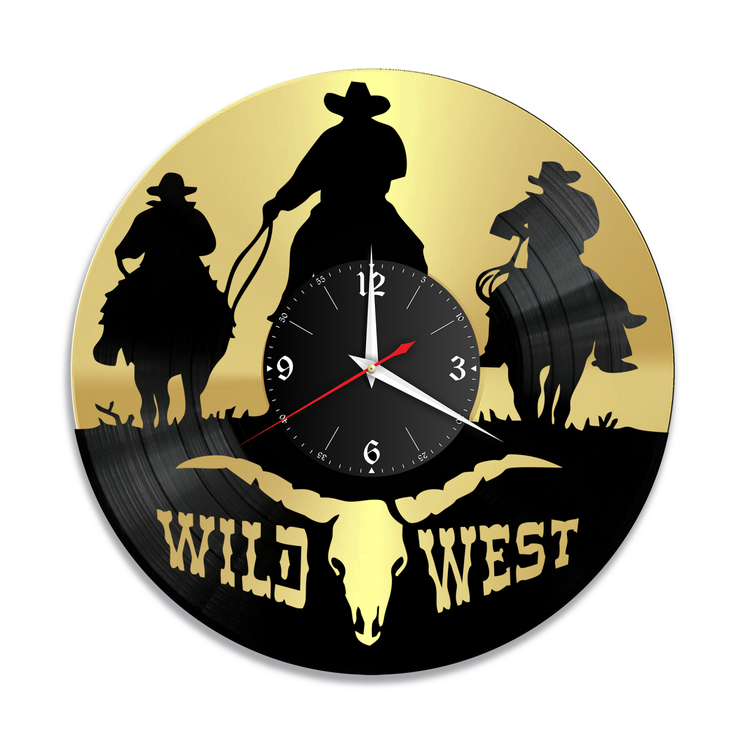 Часы настенные "Дикий Запад, золото" из винила, №1