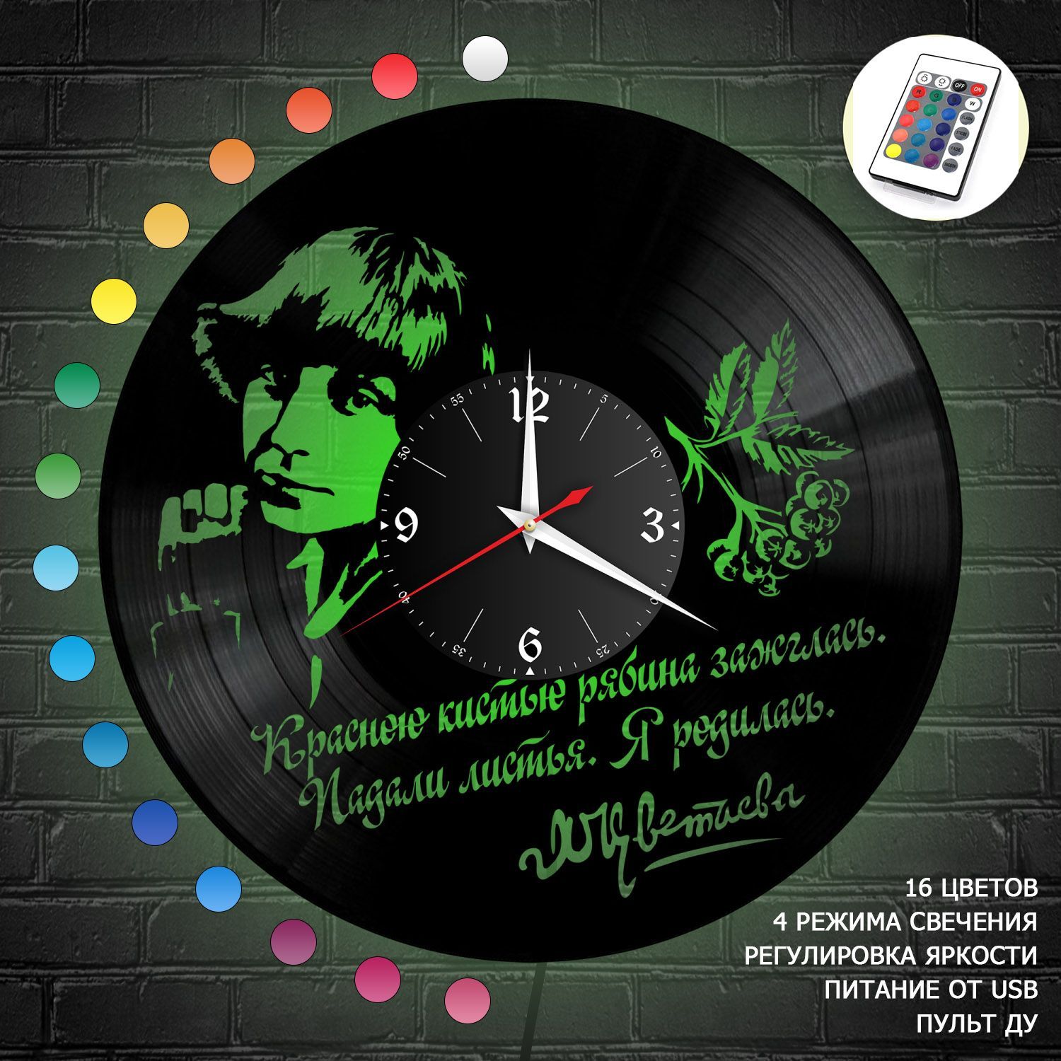 Часы с подсветкой "Марина Цветаева" из винила, №1